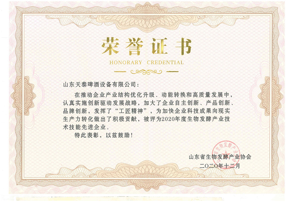 山东天泰啤酒公司自成立以来,十分注重产品品质的提升和科技的创新。公司保持在啤酒的技术投入和研发;积极开展科技创新,扩展以生物发酵以及液态酒发酵相关、工艺技术的研发。积极与各大科研院校开展技术合作。2020年开云官方在线入口与中国科学院微生物研究所签署双向战略技术合作协议。这是对开云官方在线入口技术实力和科技创新成果的肯定。