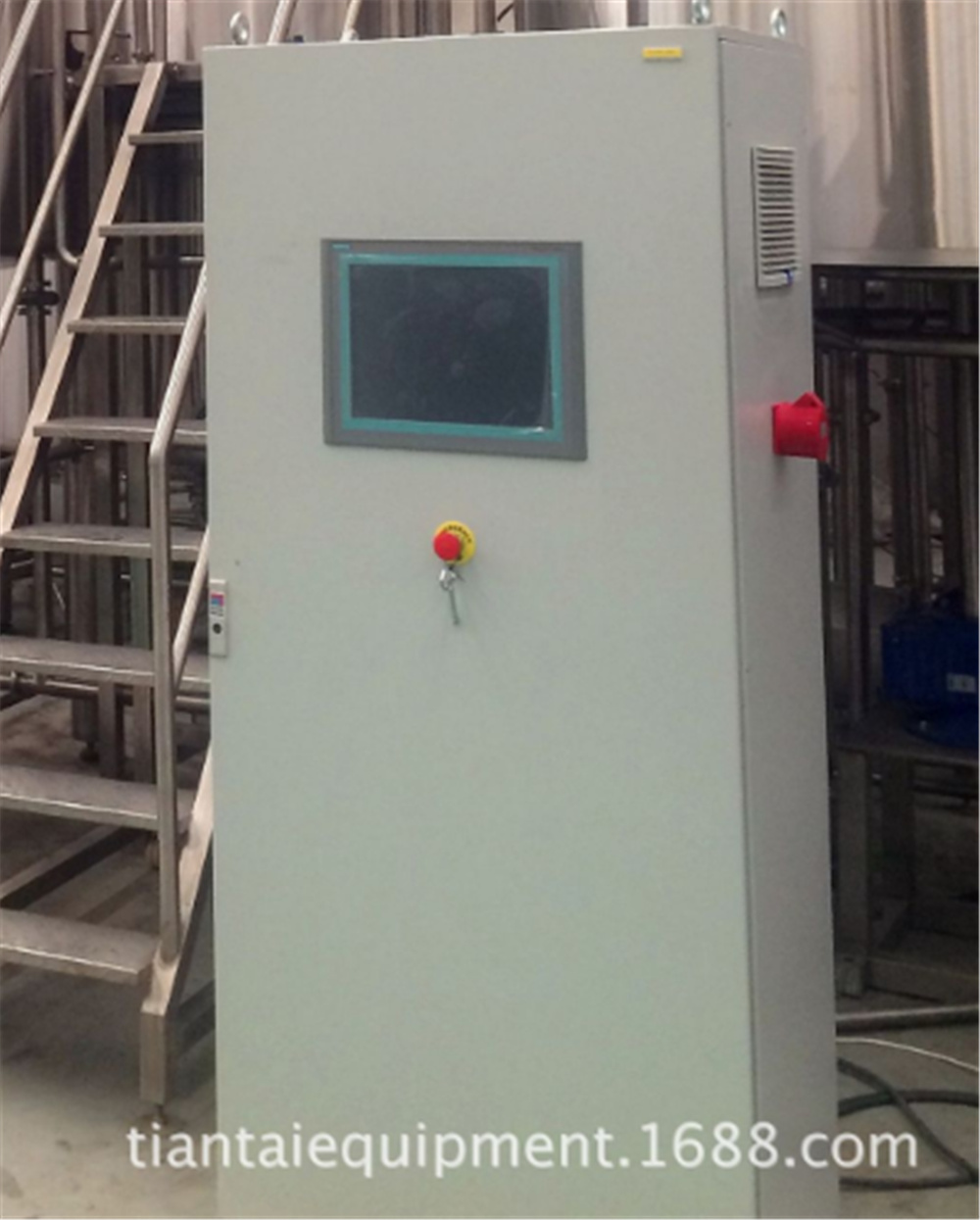 PLC全自动控制系统可以做到阀门和电机的点动启动及自动启动,同时做到自动阶段升温、自动阶段降温、配方储存、配方导入、远程控制等功能。并且PLC的画面是根据工艺流程编写,能很直观的显示出管道的走向、电机的位置,大大提高了酿造操作的准确性及时效性。
