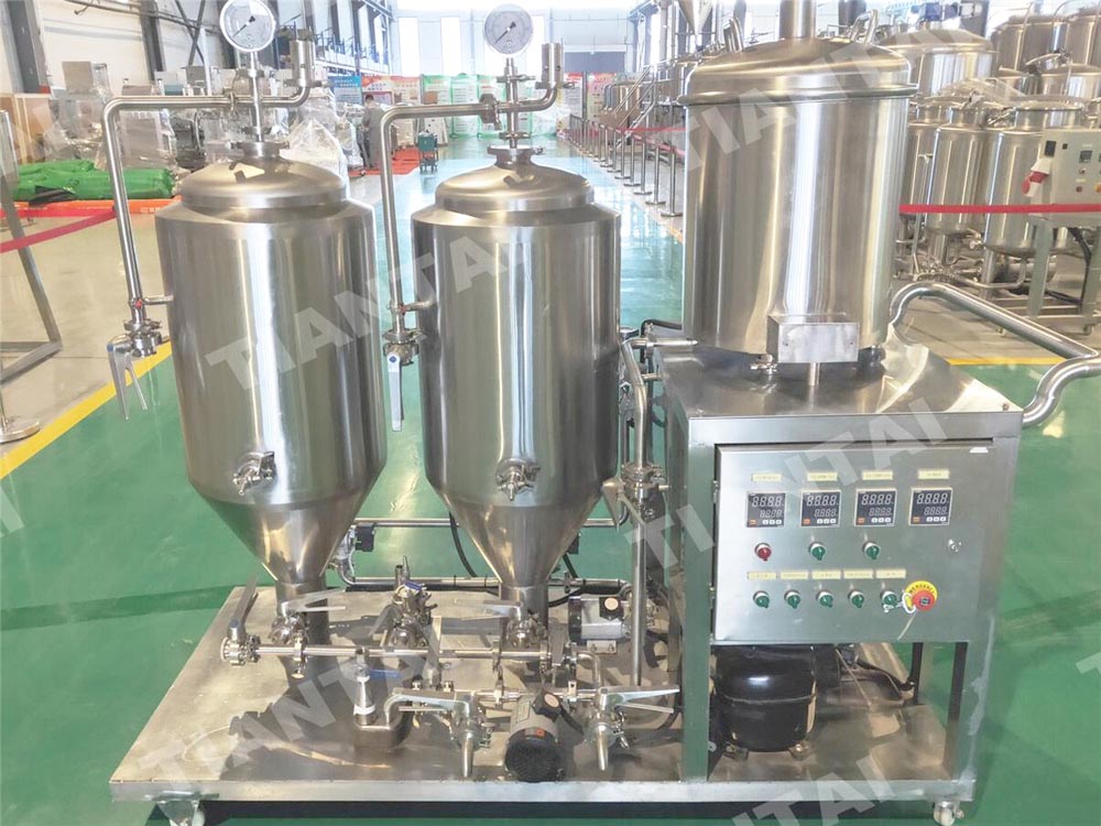 50L酿酒主要为家酿爱好者、精酿啤酒配方的研发而设计!占地面积小、操控方便、价格便宜。