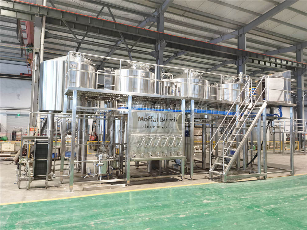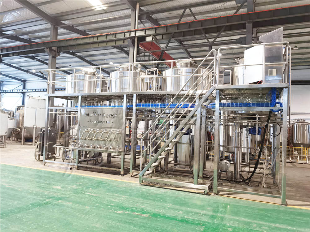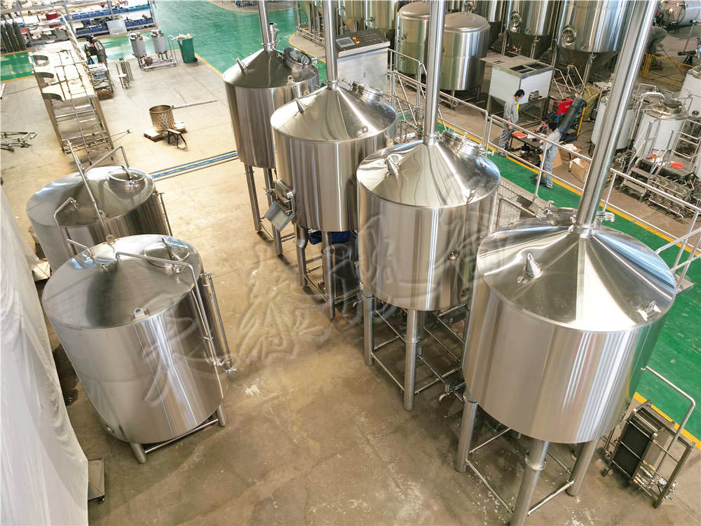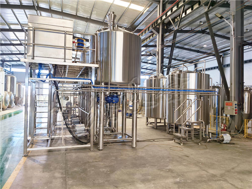 标准组成 2000L糖化罐+2000L过滤槽+2000L煮沸罐+2000L旋沉槽+4000L热水罐+304不锈钢输送管道+全不锈钢平台+配套304不锈钢气动蝶阀和管件+酒花过滤器+20㎡板式换热器+配套仪表仪器