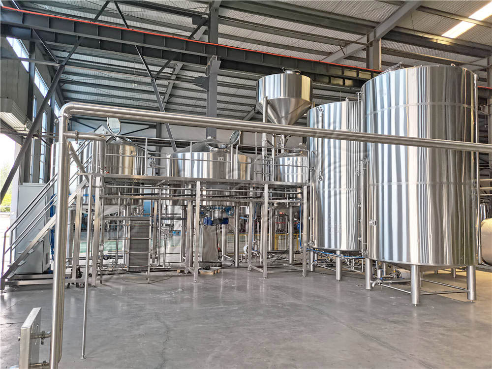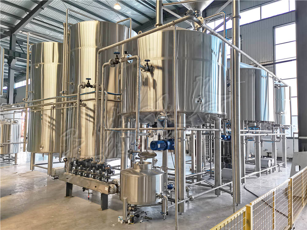 标准组成 5000L糖化罐+5000L过滤槽+5000L煮沸罐+5000L旋沉槽+10000L热水罐+304不锈钢输送管道+全不锈钢平台+配套304不锈钢气动蝶阀和管件+酒花过滤器+50㎡板式换热器+配套仪表仪器