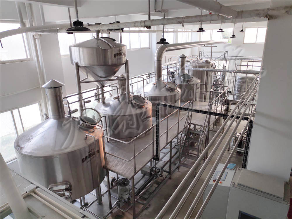 标准组成 2000升糖化罐+2000升过滤槽+2000升煮沸罐+2000升旋沉槽+4000升热水罐+304不锈钢输送管道+全不锈钢平台+配套304不锈钢气动蝶阀和管件+酒花过滤器+20㎡板式换热器+配套仪表仪器